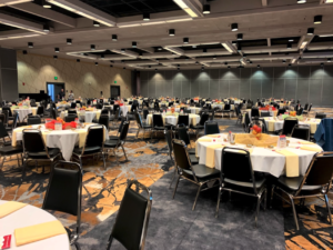 The Yakima Event and Luncheon took place at the Yakima Convention Center. We used Roy’s Audio Visual to provide our in-person audio-visual as well as our two live streams, one in English and one in Spanish. We had all the same components for the Yakima event as we did for the Wenatchee one: morning workshops, headshots for students, 400 person in-person luncheon, set-up and tear-down, and in-room Spanish translator. However, for this event, we had a few hiccups with the livestream component and the in-room AV component. Due to new wiring at the Yakima Convention Center, the AV team faced many technical challenges on how to provide the best experience for those in the room and joining us online. One of the videos didn’t play in the correct order and the livestream component needed to be tweaked in order to keep the quality consistent throughout the program. The GFS Events team kept a cool head and the program went off without any detectable hitches. For those watching at home, they never knew there was an initial issue with the live stream.